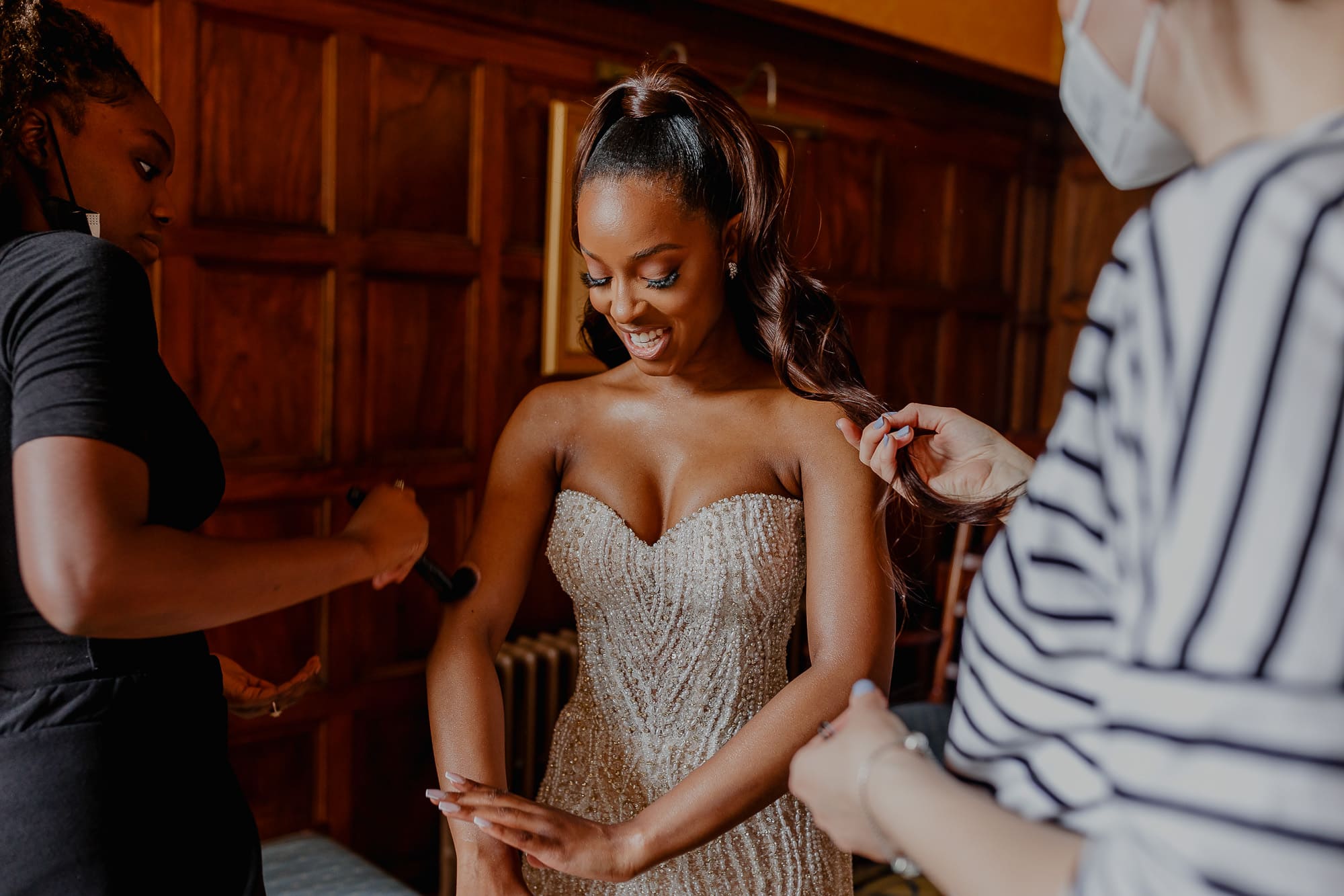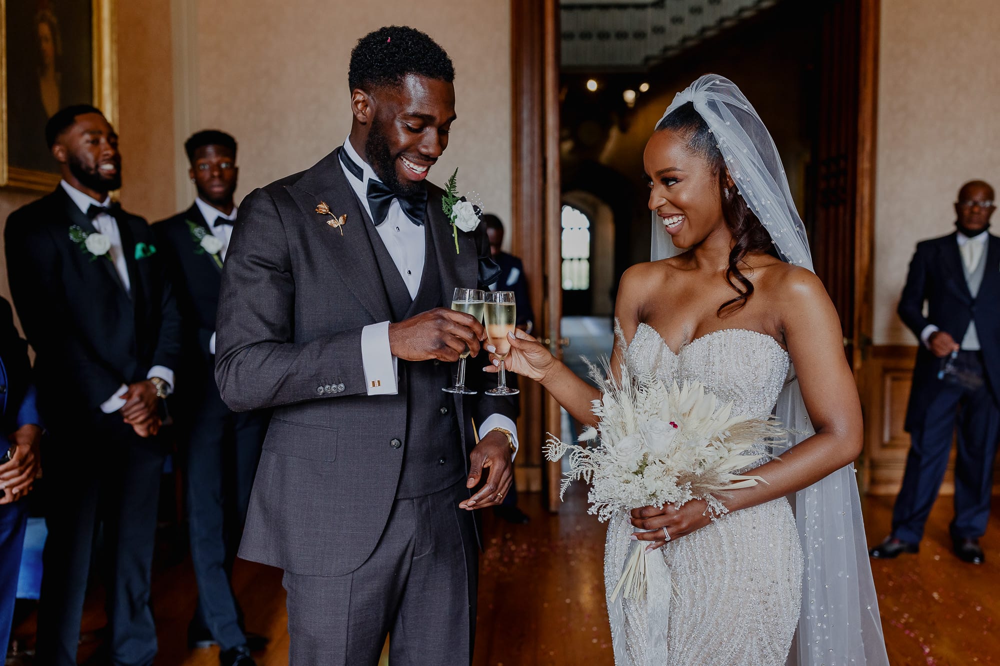Love knows no boundaries, and despite the challenges of Covid-19 restrictions, May and Sanmi proved that nothing could dampen their spirits on their special day. The historic and enchanting Ashridge House in Hertfordshire was the perfect backdrop for their intimate wedding, which had to be split into two sittings with 15 guests each. The first sitting was graced by their immediate family, while the second saw their bridesmaids and groomsmen joining in the celebration. Let’s take a journey through the beauty of Ashridge House and the magic that unfolded during May and Sanmi’s wedding day.
